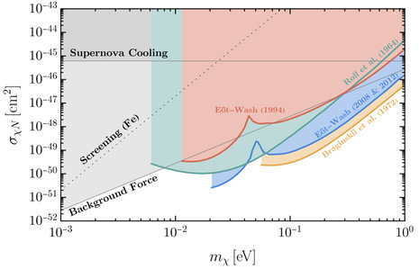 图: 扭秤实验对超轻暗物质散射的限制结果