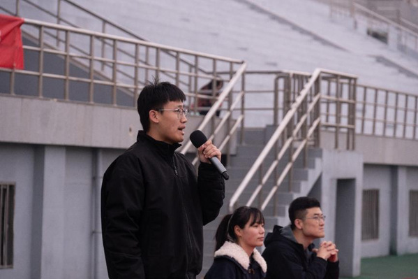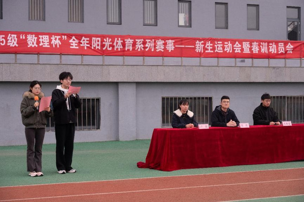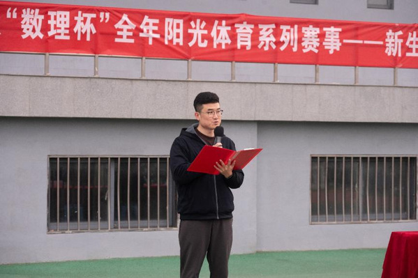 运动会开幕式由张正和张槿溶主持,辅导员卢萌为本次运动会致辞,她回顾了“数理杯”系列赛事陪伴新生走过的半年时光,从趣味运动会到各项球类比赛,同学们展现了理院学子朝气蓬勃、锐意进取的精神风貌。卢萌强调,体育活动不仅是强健体魄的举措,更是凝聚班级力量、涵养优良学风的重要平台,希望同学们严守赛纪、全力以赴、珍惜友谊,将赛场上的拼搏精神融入日常学习生活,做到文武兼修、知行合一。随后,辅导员崔皓做春训动员讲话,他结合全国两会关于加快建设健康中国和体育强国的精神,指出体育不仅是竞技比拼,更是意志与品格的锤炼。崔皓强调,体育与学业相辅相成、双向赋能,是“文明其精神,野蛮其体魄”的成长智慧,希望同学们摒弃“体育与我无关”的认知,主动走出宿舍、积极投身春训。崔皓向全体同学提出三点希望:一是主动参与,以热爱赴热爱,在运动中感悟拼搏与坚守;二是刻苦训练,以坚持破极限,科学规划、劳逸结合,以最佳状态备战校运会;三是凝聚合力,以团结筑辉煌,涵养团队意识,为集体荣誉并肩奋斗。院舞蹈队带来活力满满的舞蹈《magnetic》,动感的舞姿点燃现场氛围,赢得全场阵阵欢呼;辅导员邓帅豪宣布运动会开始。